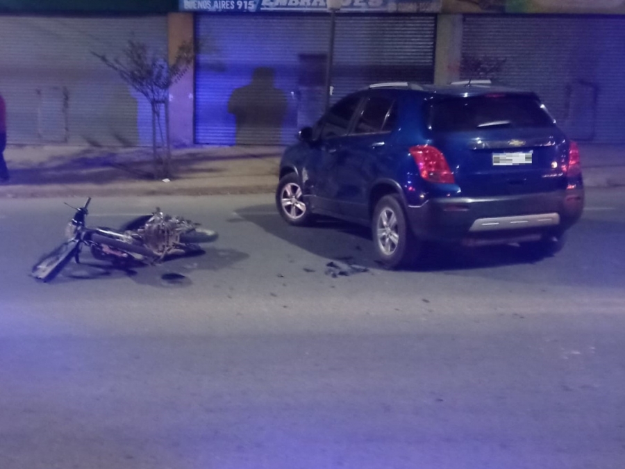 Ocurrió este sabado por la nocheen la intersecciónde Buenos Aires y Laprida. La mujer debió ser trasladada al Hospital local.